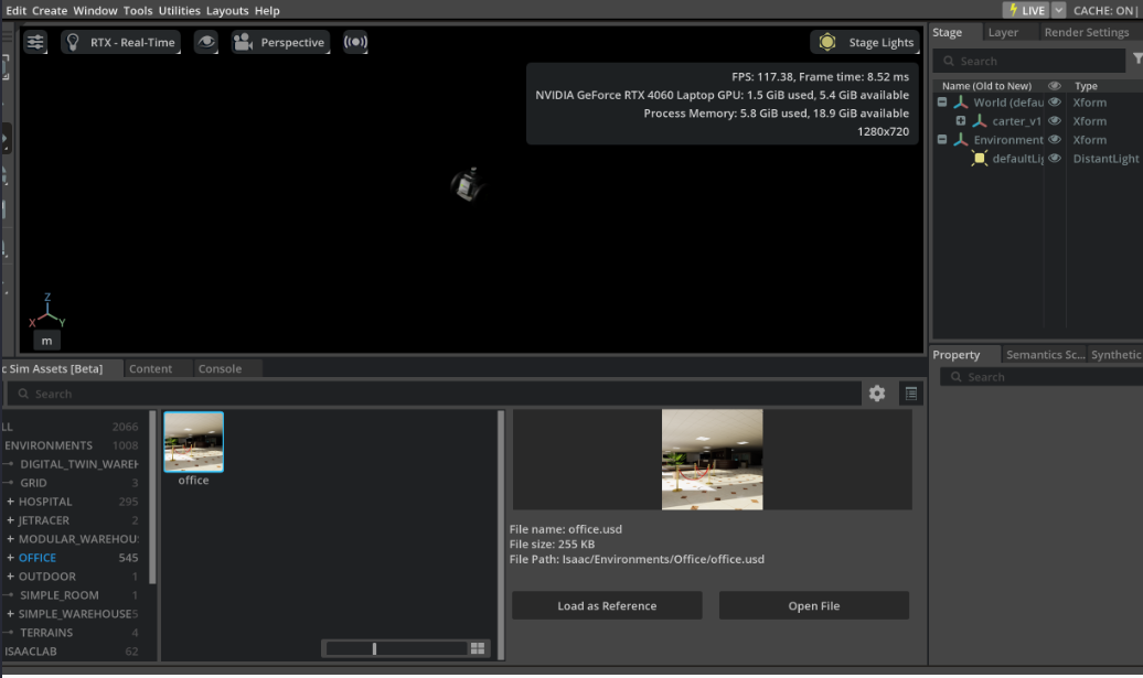 Map의 경우 isaac sim assets 중 Office와 Hospital을 사용하였습니다.