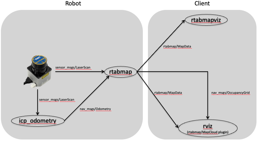 rtabmap의 경우 2D LaserScan, Depth Camera, Stereo Camera등을 이용하여 단일 센서 SLAM 또는 multi-sensor SLAM이 가능합니다.